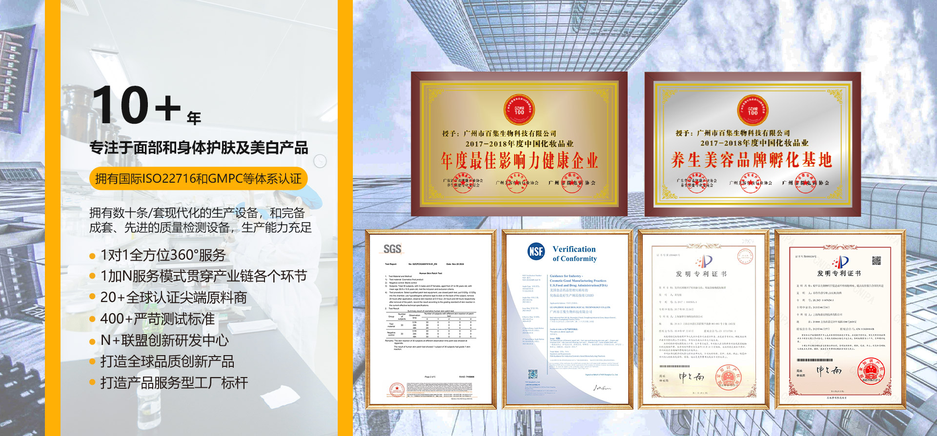 廣州市百集生物科技有限公司成立于2012年,坐落在亞洲化妝品硅谷的廣州市白云區(qū),是一家具有現(xiàn)代化管理、專(zhuān)業(yè)化水準(zhǔn)的化妝品研發(fā)及制造基地,為客戶(hù)提供專(zhuān)業(yè)的OEM/ODM一站式服務(wù),涵蓋產(chǎn)品規(guī)劃、配方開(kāi)發(fā)、包裝設(shè)計(jì)、功效測(cè)試、乳化、灌裝、包裝、倉(cāng)儲(chǔ)物流等全方位服務(wù)。產(chǎn)品涵蓋各類(lèi)化妝品水、乳、霜、膏、面膜、精華、BB霜、CC霜、素顏霜、精油及粉類(lèi)等成品及半成品,涵蓋日化線(xiàn)及專(zhuān)業(yè)線(xiàn)配方。公司秉承“創(chuàng)新、共贏(yíng)”的核心價(jià)值觀(guān)......